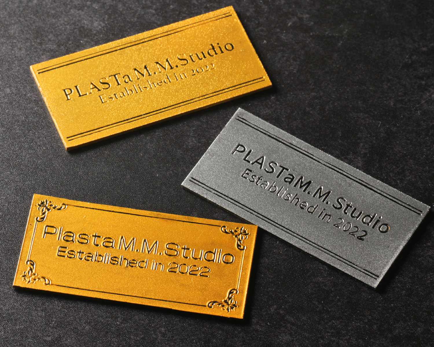 すでに展示会やコンテスト用に銘板のオーダーをいただいておりますが、「デザイン不要」「枠とフォントを選び刻印したい文字を教えていただくだけ」で気軽に銘板製作が可能なセミオーダーです。