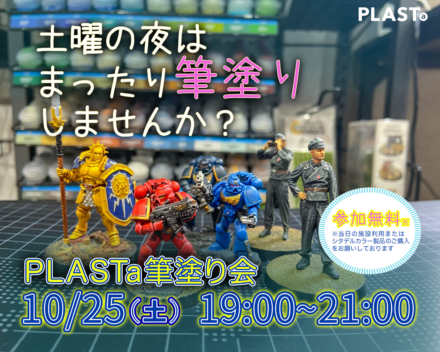 ※当日の施設利用またはシタデルカラー、ウォーハンマー製品のご購入をお願いしております