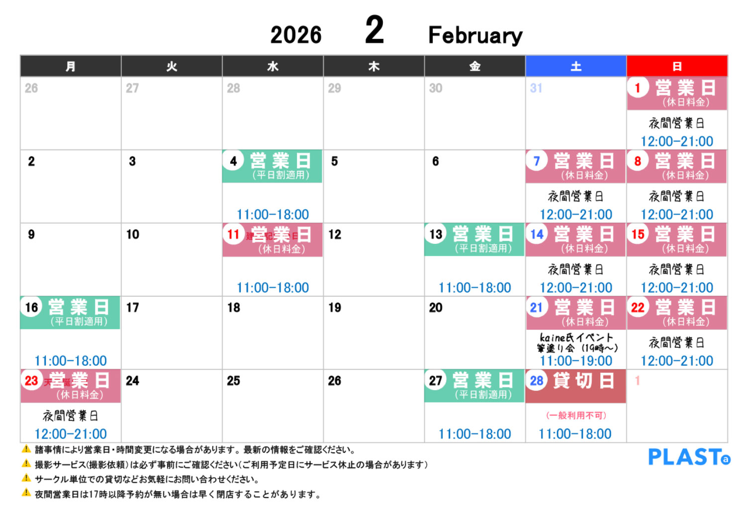 2/28(土)貸切営業のため一般利用不可
